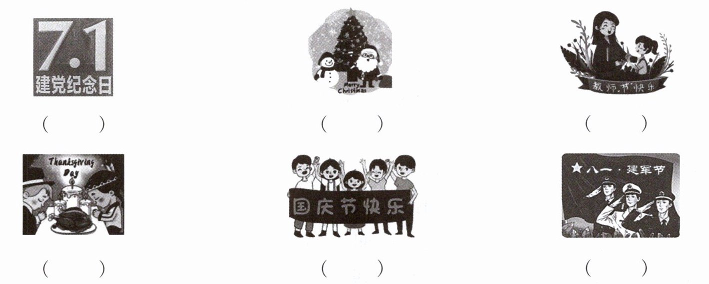 一、Look, listen and number. 看图,听录音,用 A,B,C……给图片标号。