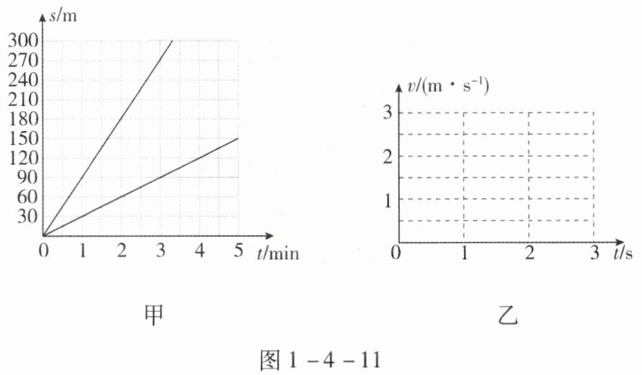 5. 两个物体在同一直线上、同向运动,其路程随时间变化的关系图像如图1-4-11甲所示。求: