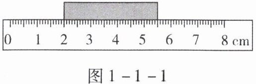 3. (2023, 达州) 长度测量是最基本的测量,图 1 - 1 - 1 是某同学使用刻度尺测量某一物体长度的情景,则该刻度尺的分度值是