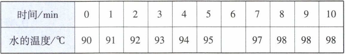 |水的温度/℃|90|91|92|93|94|95| |97|98|98|98|