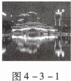 3. (2024, 成都) 夜幕降临,横跨成都锦江两岸的安顺廊桥灯火璀璨,桨声灯影里,夜色让人陶然而醉……正所谓“锦江灯月遥相近,烟火市井三千年”。如图 4 - 3 - 1 所示,水中“灯影”是由光的