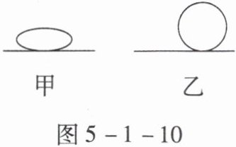 7. 小明将水滴在透明玻璃纸上,透过水滴观察报纸上的字,发现字变大了,这个水滴相当于一个凸透镜,如图5-1-10甲所示。若把它带到太空中,水滴会变成图5-1-10乙所示的形状,则在太空中,该水滴透镜(