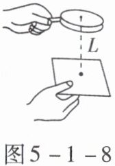 5. 小星利用太阳光测量凸透镜的焦距,方法如图5-1-8所示。他注意到让凸透镜正对太阳光,但没有仔细调节纸片与凸透镜的距离,在纸片上的光斑并不是最小时,就测出了光斑到凸透镜中心的距离L,那么凸透镜的实际焦距(