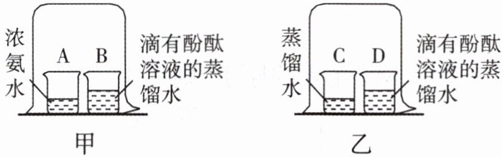 (1)溶液变红 A 烧杯中的氨分子运动扩散到B烧杯中,氨分子遇水变为氨水,氨水显碱性,使酚酞变红