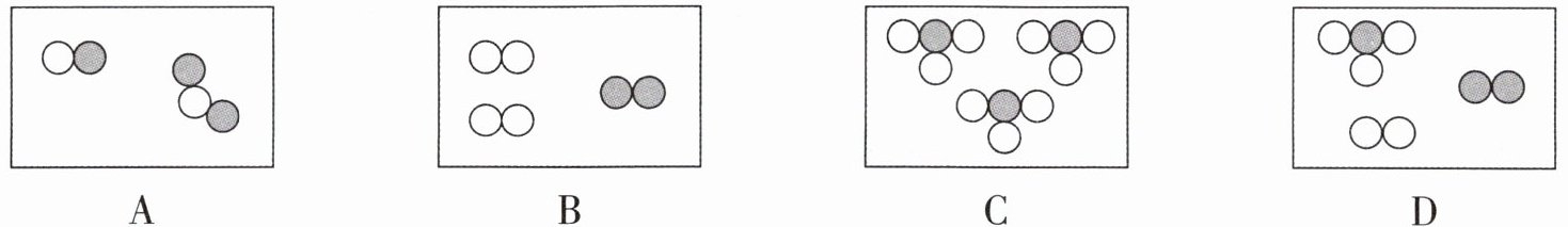 1. 下列各图中“○”“●”分别表示不同元素的原子,则其中表示纯净物的是( )。