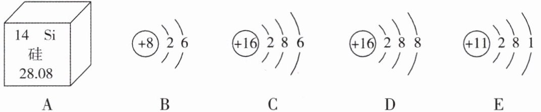 (2)B、C、D、E中属于同种元素的是______(填字母),原因是它们的______相同。