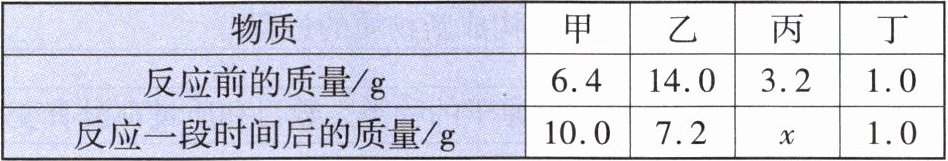 |反应一段时间后的质量/g|10.0|7.2|x|1.0|