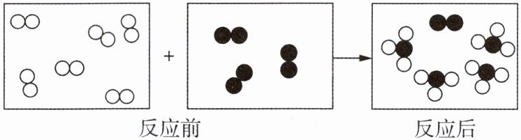 6. “$ {○○} $”和“$ {●●} $”代表两种不同的分子,它们在一定条件下能发生化学反应,反应前后的微观示意图如下所示,下列说法不正确的是( )。
