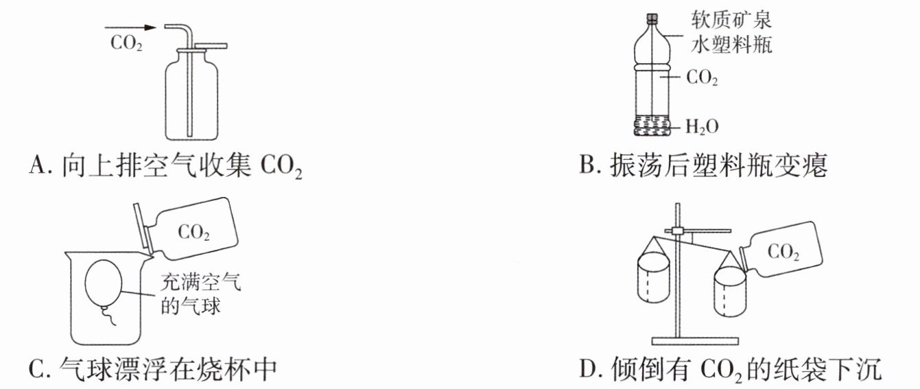 B 【解析】振荡后塑料瓶变瘪,主要体现二氧化碳能溶于水,故B项不正确。