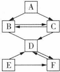 3. A ~ F 是初中化学的常见物质,六种物质均由非金属元素组成。其中 D、F 是组成元素相同的气体;E 为黑色固体。各种物质间存在如图所示的关系。(图中 “→”表示转化关系,“——”表示相互反应,部分反应物、生成物及反应条件已略去)
