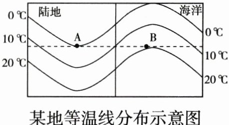 (填“1”或“7”)月的等温线分布示意图。(4 分)(2)请说明你的判断依据。(2 分)