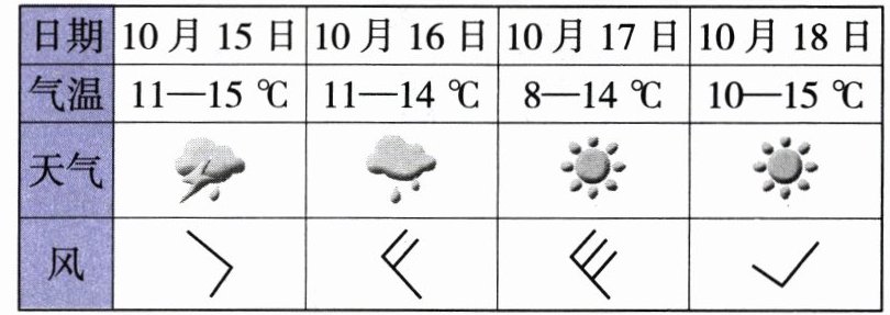 天津某学校计划举办郊游活动,同学们查询了近期的天气情况,如下表所示。读表,回答 10—12 题。