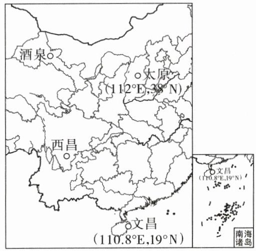 2023年5月30日9时31分,我国在西昌卫星发射中心用长征二号F运载火箭,将“神舟十六号”载人飞船发射升空,飞船成功与我国空间站对接。读我国四大卫星发射中心分布示意图和酒泉、西昌位置示意图,回答8、9题。