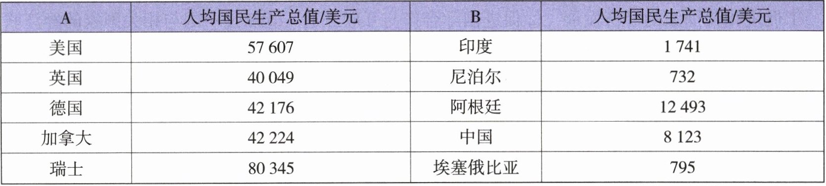 |A|人均国民生产总值/美元|B|人均国民生产总值/美元|