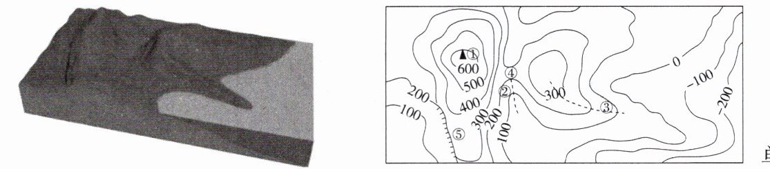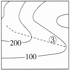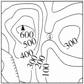 凸出。- ④鞍部:两侧的山脊、山谷等高线近似