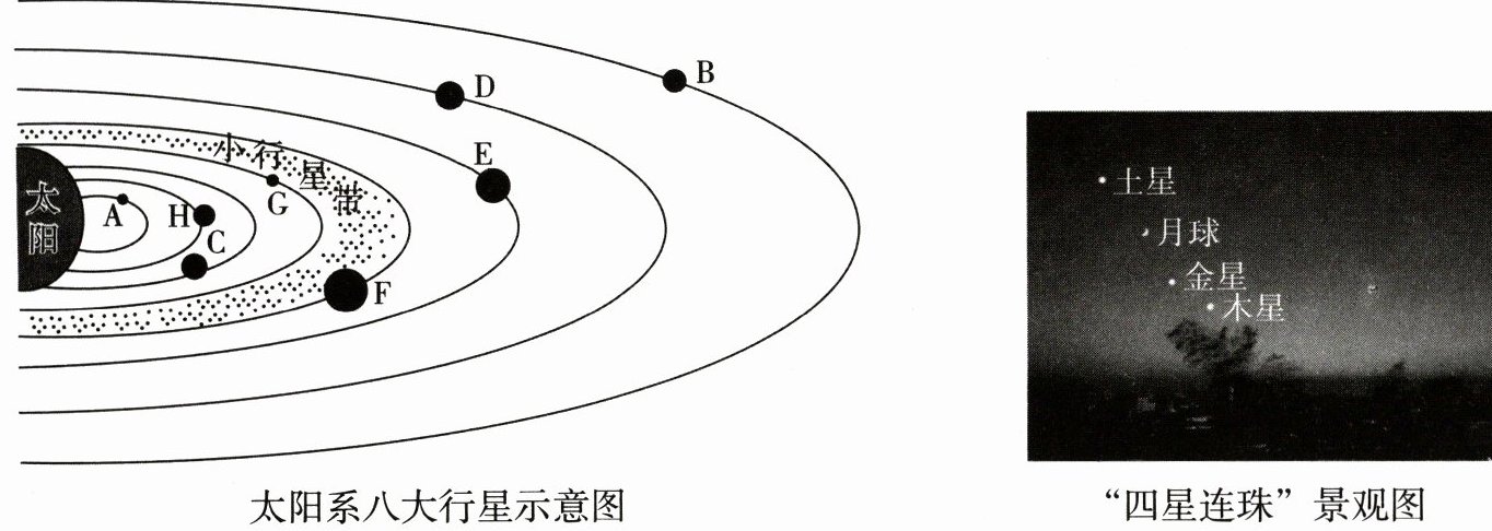 两行星轨道之间。(6分)(2)“四星连珠”的四个天体中,天体类型与其他三个不同的是
