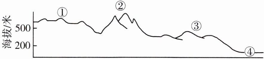 D【解析】地面崎岖不平的不一定是山地,也可能是丘陵,A错误;地面广阔平坦的不一定是平原,也可能是高原,B错误;高原相对高度小,但海拔高,C错误;盆地是四周高、中间低的地形,D正确。
