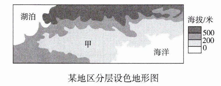 3. 分层设色地形图是在绘有等高线的地图上,按照不同海拔着上不同颜色的地图。读某地区分层设色地形图,回答问题。