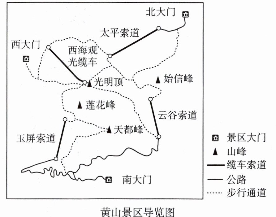 )。A. 从南大门乘车直达莲花峰 B. 徒步游览天都峰,从北大门进入的路线最短