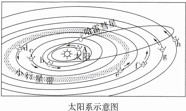 。(2)写出代表与地球相邻的两颗行星的字母: