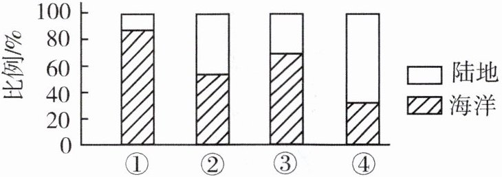 1. 下图中能正确表示全球海洋和陆地面积比例的是(