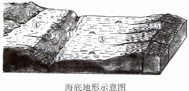 5. ①海沟 ②大陆坡 ③洋盆 ④大陆架 ⑤洋中脊