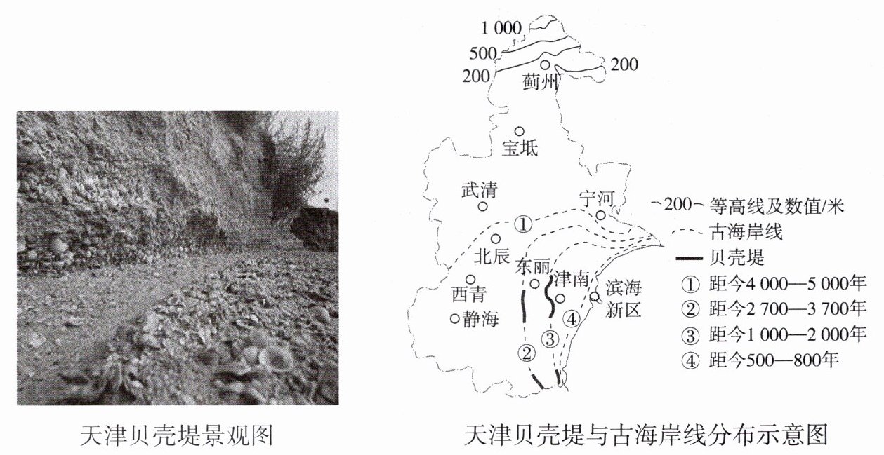 (2)四【解析】右图中有四条古海岸线,说明天津至少经历了四次大的海陆变迁。
