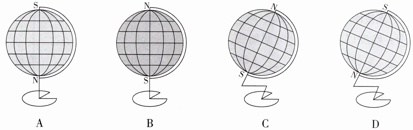 5. 同学们把乒乓球穿在铁丝上,经过反复调整,最终制作成正确的地球仪是(