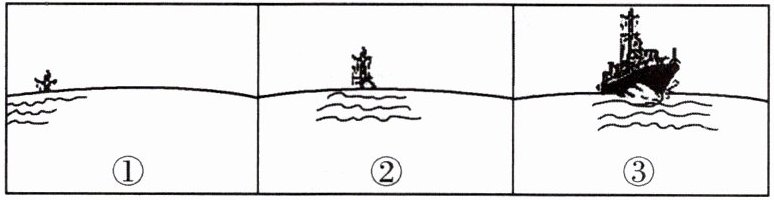 3. 在海边观察远处驶来的轮船,会出现下图中①至③所示的现象。图示这种现象反映的地理事实是(