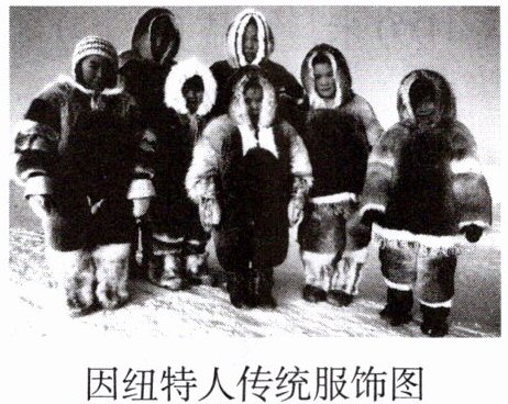 定居于北冰洋沿岸的因纽特人用毛皮制作上下连体的服装,且戴风帽。读因纽特人传统服饰图,回答2、3题。