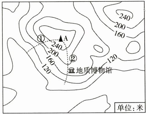 。(6 分)(4)A 处到地质博物馆的图上距离约为 1.2 厘米,如果想要知道 A 处到地质博物馆的实地距离,图中需要提供