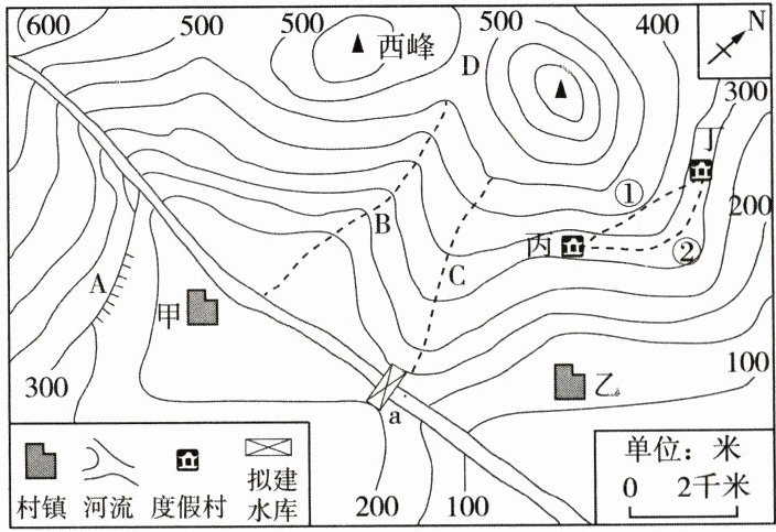 (5)水库具备蓄水、灌溉、水产养殖、旅游等功能,能有效促进当地经济发展。图中水库大坝 a 建成前,务必要做好______(填“甲”或“乙”)村的库区移民搬迁工作。(2 分)