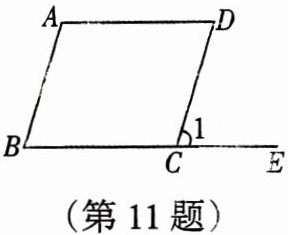 11. 如图,将$□ ABCD$的一边 BC 延长至 E,若$∠A= 110^{\circ }$,则$∠1= $