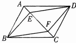 又 $ \because AE = CF $,$ \therefore OE = OF $,$ \therefore $ 四边形 $ BEDF $ 是平行四边形,