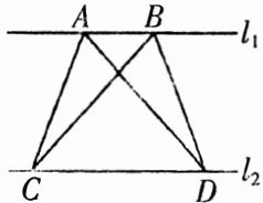 13. 如图,直线$l_{1}// l_{2}$,A,B 是$l_{1}$上的两点,C,D 是$l_{2}$上的两点.$△ACD与△BCD$的面积相等吗? 请说明理由.