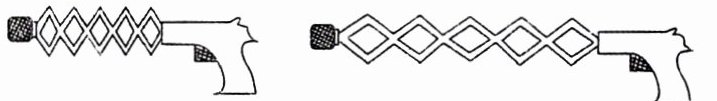 如图,将类似于活动栅栏门的菱形结构后端装在塑料玩具手枪的枪口上,前端连接一只塑料拳头,成为拳击枪. 玩的时候,右手握枪,食指扣动扳机,一记右直拳就打出去了. 松开扳机,塑料拳头又收了回来.