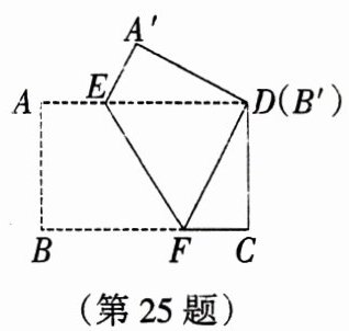 25. 把一张矩形纸片(矩形$A B C D$)按如图的方式折叠,使顶点$B和点D$重合,折痕为$E F$.若$A B = 3 \mathrm { cm }$,$B C = 5 \mathrm { cm }$,则重叠部分$\triangle D E F$的面积是______