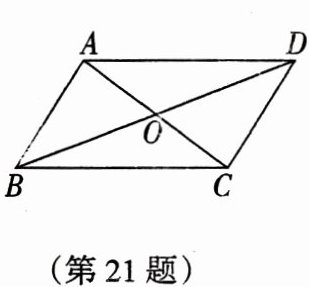 21. 如图,在$□ A B C D$中,对角线$A C与B D相交于点O$,在不添加任何辅助线和字母的情况下,请添加一个条件,使$□ A B C D$变为矩形,需添加的条件是______