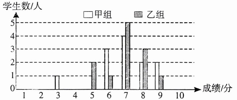 (1)甲组:众数:7;中位数7. 乙组:平均数7,中位数7.