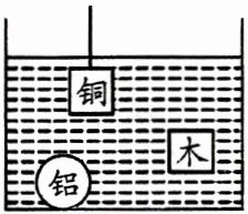 4. 体积相同的铜块、铝球和木块,浸在液体中的情况如图所示,则比较它们受到的浮力(