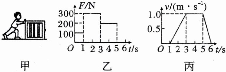 13. 如图甲所示,在水平地面上有一长方体木箱,路路用水平推力F把木箱向前推动。此过程中推力F随时间t的变化情况如图乙所示,木箱前进的速度v的大小随时间t的变化情况如图丙所示。则从3s至5s内,推力对木箱所做的功为