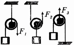 6. 如图所示,分别用力$F_{1}$、$F_{2}和F_{3}$,使用下列三个装置匀速提起同样的重物,不计滑轮的重力和摩擦且不计绳重,则$F_{1}$、$F_{2}和F_{3}$的大小关系是 (