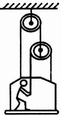 13. 如图所示,质量为60kg的人,站在质量为30kg的吊篮内,他至少用