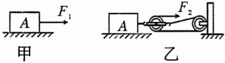 6. 如图甲,用力$F_{1}$将物体A匀速直线拉动一段距离s,若借助如图乙装置用力$F_{2}$将物体A在同样水平面上做匀速直线运动移动相同的距离s,下列说法正确的是 (