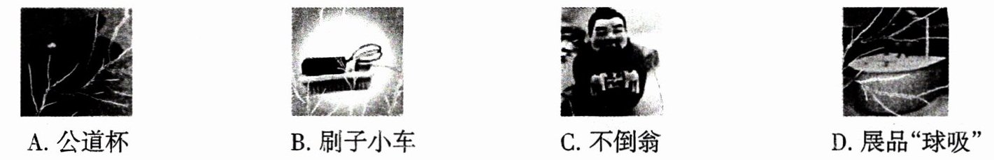 1. 佳乐在参观科技馆时体验了一次骑“空中自行车”,自行车的下方悬挂着质量较大的配重,自行车在钢丝上前进,骑行的人不会掉下来。如图所示的实例中,与自行车在钢丝上前进而不倾倒的原理相同的是 (
