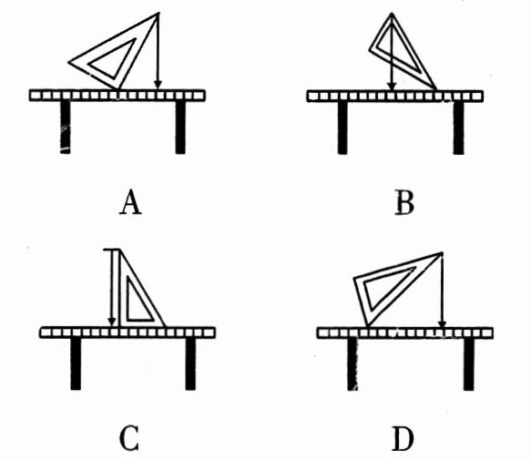 8. 利用铅垂线和三角尺判断桌面是否水平,如图所示的做法中正确的是(
