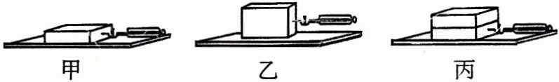 第3次:把两块相同木块叠在一起平放在长木板上,再用同样的方法拉木块(如图丙),记下相应的示数。