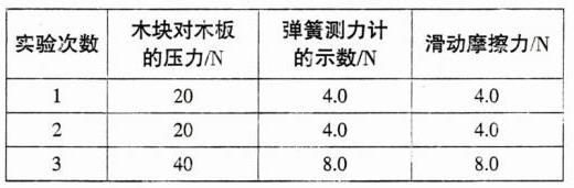 |实验次数|木块对木板的压力/N|弹簧测力计的示数/N|滑动摩擦力/N|