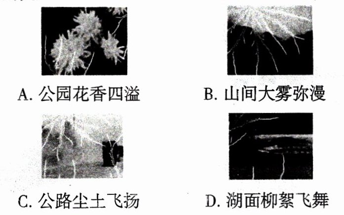 3. 哈尔滨的五月,丁香花盛开,芳香四溢。人们能闻到花香,说明花的香味分子