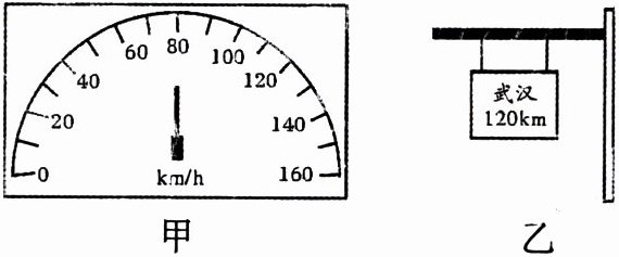 (1)图甲所示为汽车中的速度表,现在指示的车速是多少?此时司机见到路边的指示牌如图乙所示,若司机按此速度控制汽车前进,到达此城区约需多少时间?